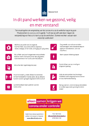 Uitgangspunt van dit protocol zijn de geldende adviezen en maatregelen van het RIVM, de overheid en de Europese Commissie. Afspraken van het Protocol ‘Veilig en gezond doorwerken’ zijn onder andere: