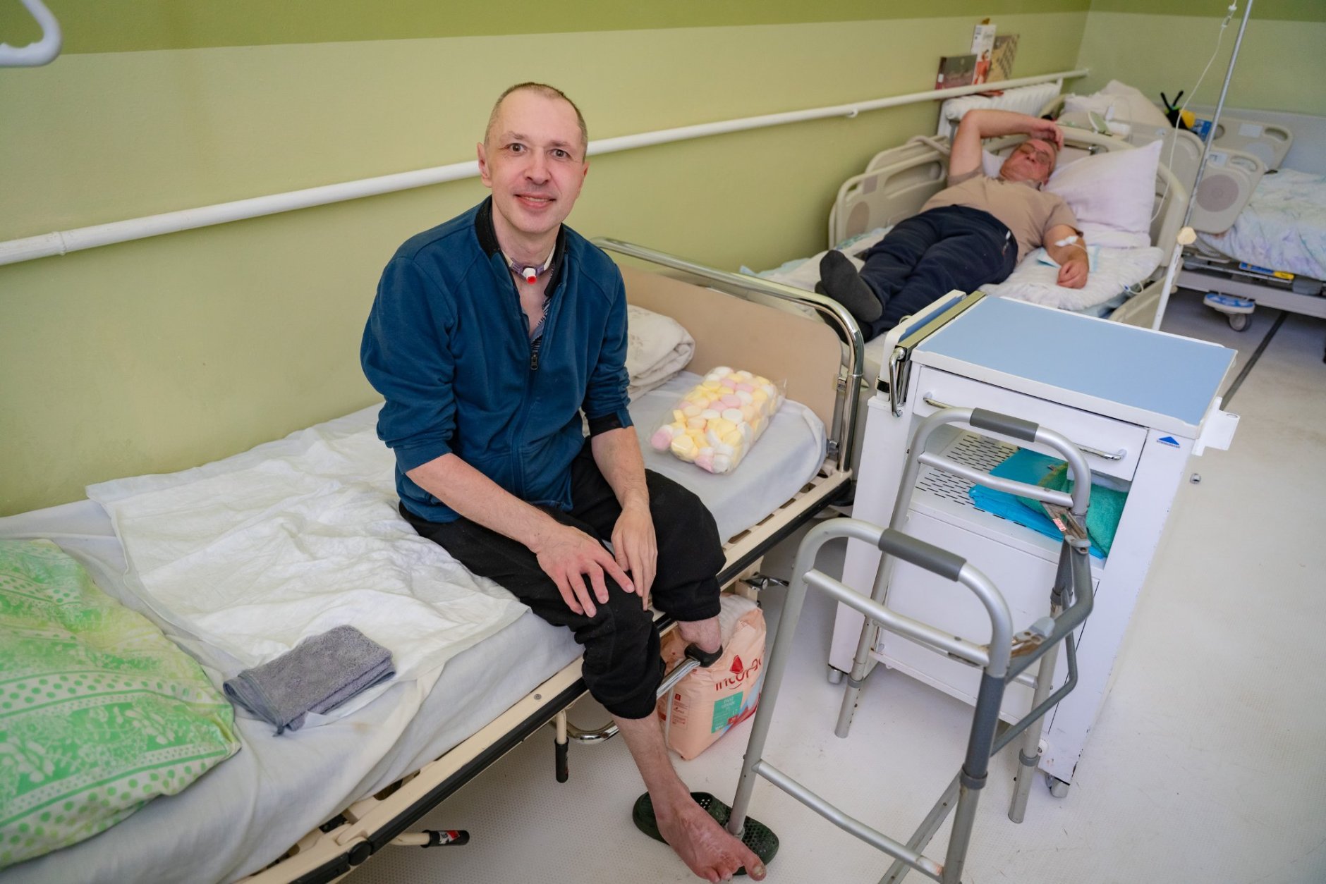 In Skalat draait een ziekenhuis met ruim 100 bedden vooral op donaties. Op een afdeling herstelt Sascha, een soldaat die bij een raketaanval zijn onderbeen verloor en zwaar hoofdletsel opliep. “Voor behandeling is het beter als hij in een grotere kliniek was geweest,” zegt de arts. “Tot die tijd zijn schenkingen en medische goederen uit het westen letterlijk van levensbelang. Dankzij ingezamelde medische hulpmiddelen van De Friese Rijders houden we stand en doen we wat we kunnen.”