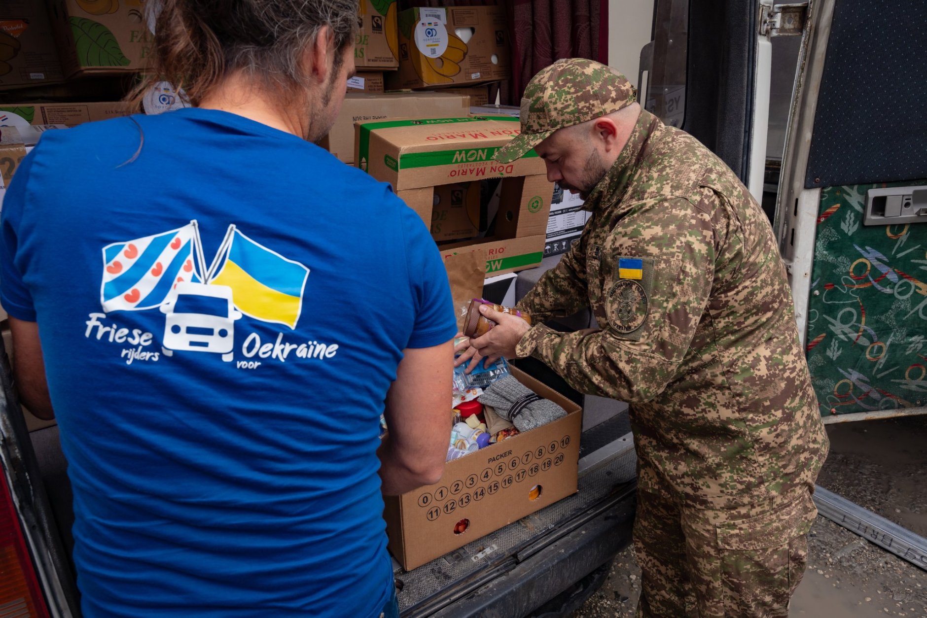Wat begon als een spontane rit, groeide uit tot een professionele logistieke keten. Arnaud Dijkstra, oprichter van De Friese Rijders, reed in 2022 na één telefoontje naar de grens om vluchtelingen op te halen. Drie jaar later is deze spontane hulp vervangen door een vaste stroom goederen. Vanuit een hub in Haulerwijk zamelen vrijwilligers goederen in, sorteren ze en maken ze pakketten voor ziekenhuizen, zorginstellingen, opvangcentra en scholen. Met lokale hulporganisaties, overheid, politie en defensie gaan die pakketten tot diep in frontgebied. Volgens de stichting zijn inmiddels meer dan een miljoen mensen geholpen.