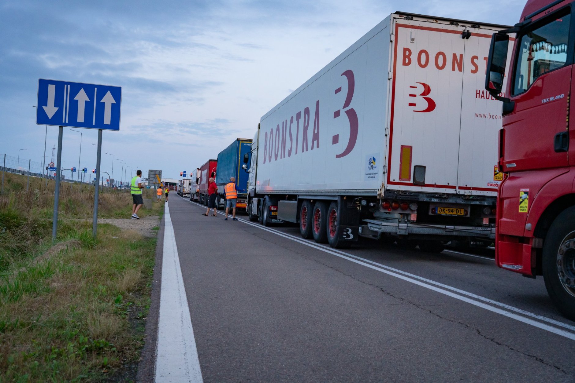 Bij Pools-Oekraïense grensovergang Krakovets staat namelijk een enorm lange file. ”Ik loop naar de douane om te kijken of we voor mogen dringen. Nederlandse chauffeurs hebben een hekel aan wachten,” lacht de Friese Teun.